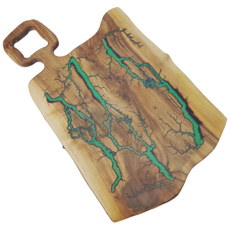 • Epoxidová živica – moderný a jedinečný dizajn – Farebná živica vytvára kontrast s kresbou dreva a pripomína prírodné útvary, riečne toky či bleskové žilkovanie. Každý kus je neopakovateľný originál s vlastným charakterom.